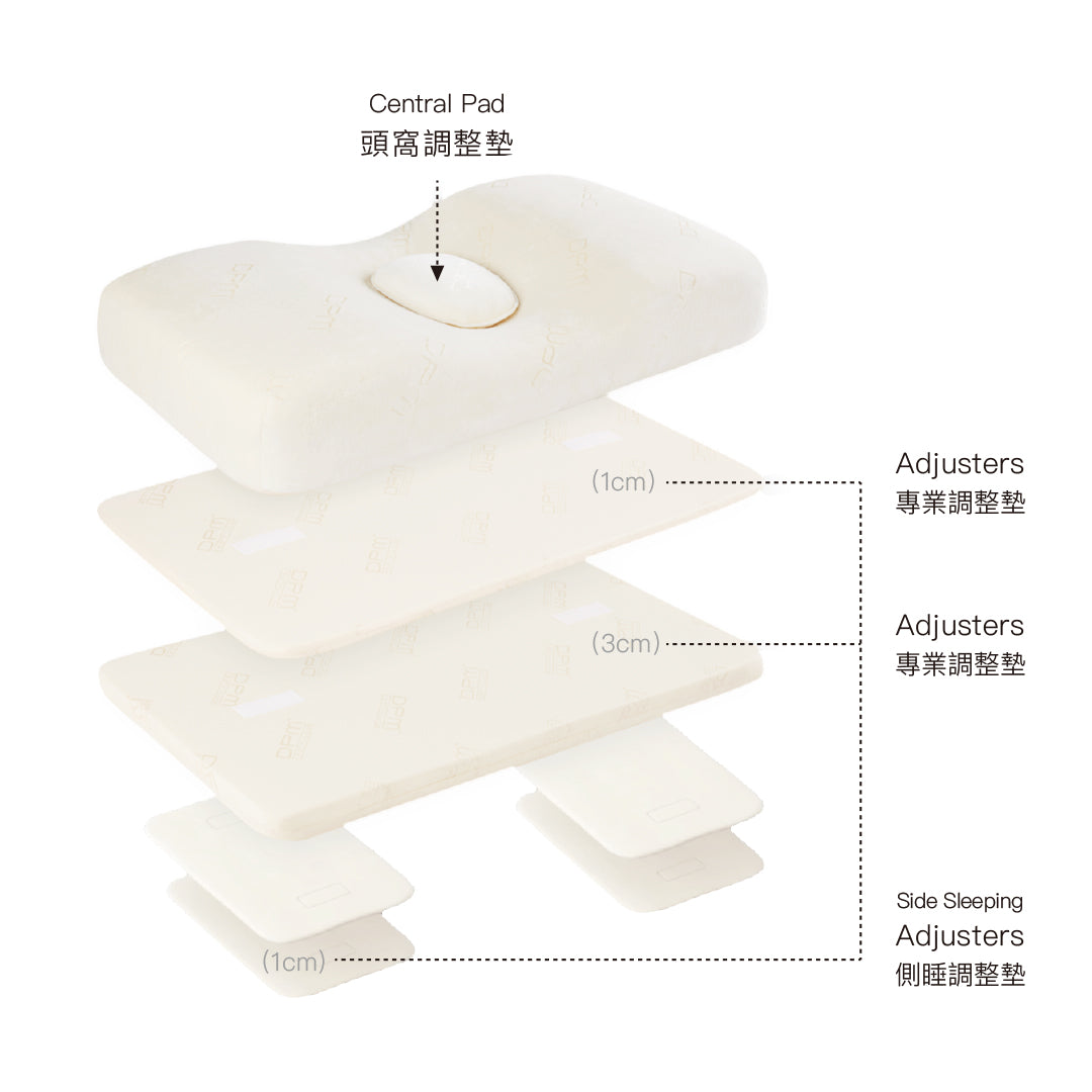 • 一款創新、科學設計的枕頭,採用可變高度技術,可完全定制,為您提供最貼合、支撐和舒適的仰睡和側睡。